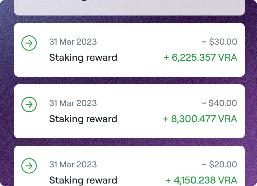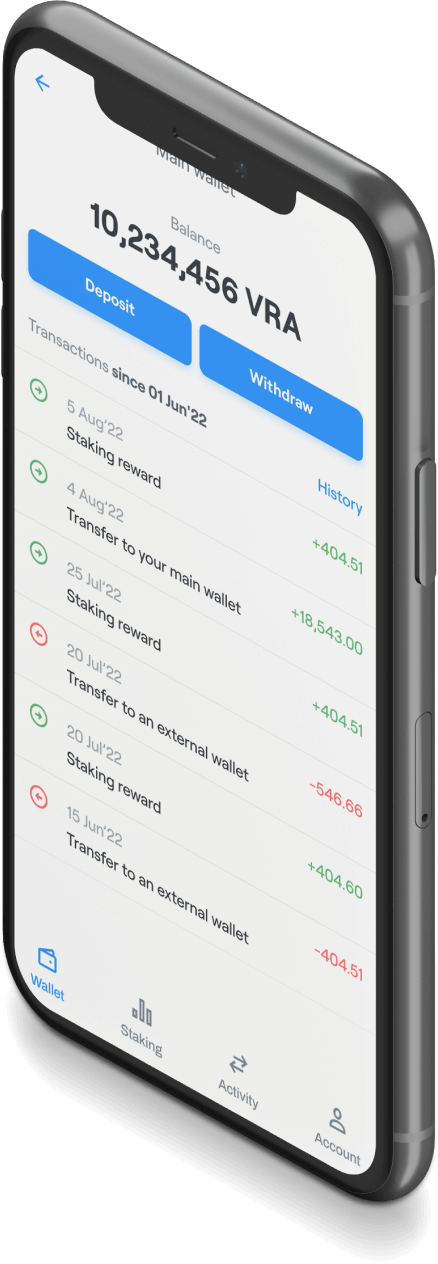 Stake. Get your rewards by staking VRA in your secure VeraWallet.